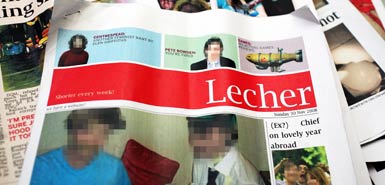 這份特別版起了另一個名字叫《Lecher》,只印刷了50份,上個學(xué)期末在一個餐飲聚會上只分派給校報的編采人員。