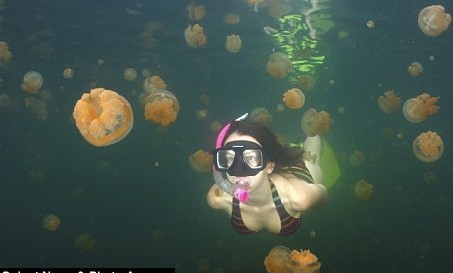 據(jù)英國媒體報道,來自美國波士頓的的計算機科學家弗拉德日前在世界上絕無僅有的無毒水母湖拍攝了自己女兒和水母嬉戲的圖片。他形容在帕勞水母湖里游泳如同置身于果凍中,“我們越往湖中游,就有越多的水母將我們包圍,看著云集的水母,真是令人愉快。”