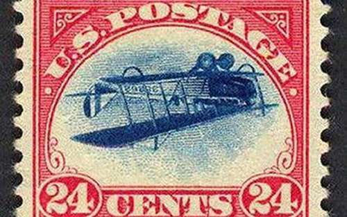 一九一八年五月,一名股票經(jīng)紀(jì)行文員到華盛頓市郵局購買新發(fā)行的空郵郵票時(shí),發(fā)現(xiàn)郵票印錯(cuò)。當(dāng)他發(fā)現(xiàn)這個(gè)“珍貴”的錯(cuò)誤之后,立即將整版郵票買下。