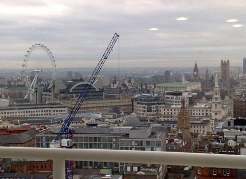 今年40歲的德里克-伯登(Derek Burden)在倫敦西區(qū)的科芬園的16層高樓處發(fā)現(xiàn)令人驚異的UFO景象,拍攝時(shí)間是早上8點(diǎn)30分。但是伯登只用手機(jī)拍攝了一張照片,這件事發(fā)生在幾天前,當(dāng)時(shí)他的妻子莎拉注意到厚云層的太空中隱約出現(xiàn)了幾個(gè)特殊形狀的飛行物,伯登說:“當(dāng)時(shí)我正在等即將送來的一些材料,我便忙中偷閑去陽臺(tái)喝杯茶,依據(jù)妻子所描述的不明飛行物,我在16層樓拍攝起來十分方便!彼指出,這4個(gè)UFO釋放的光線并不是任何典型的光線折射,并證實(shí)在拍攝時(shí)身旁并沒有任何特定光源進(jìn)行偽造拍攝。