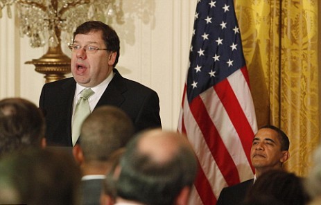 據(jù)英國(guó)天空電視臺(tái)新聞報(bào)道,愛(ài)爾蘭總理考恩當(dāng)?shù)貢r(shí)間3月17日在美國(guó)白宮出席了愛(ài)爾蘭傳統(tǒng)的圣帕特里克節(jié)的慶;顒(dòng)。由于白宮的字幕機(jī)出錯(cuò),考恩讀了奧巴馬剛剛發(fā)表過(guò)的講演稿內(nèi)容,而奧巴馬總統(tǒng)則念了考恩總理的講稿。