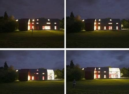 羅素的神奇房屋只要按下按鈕,就可以在短短的6分鐘內(nèi),靠著4個(gè)汽車電池的動(dòng)力,重達(dá)20噸的屋頂和墻壁還可以在軌道上滑動(dòng)、開闔,打破室內(nèi)室外的空間界限,不必搬家就可以隨著四季不同的光線和溫度,讓住家呈現(xiàn)不同的風(fēng)貌。