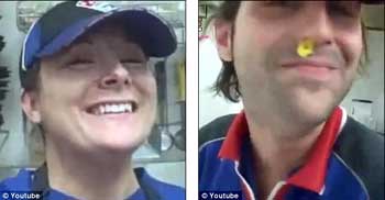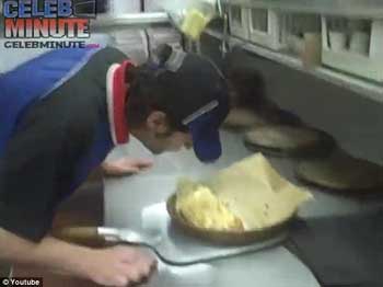 報(bào)道稱,這兩名員工用攝像機(jī)進(jìn)行了自拍,并將錄像放到了網(wǎng)上,引起軒然大波。錄像中,一名男員工正在做三明治,他把一小塊奶酪抹在自己的鼻孔,然后又得意忘形的把這塊奶酪放進(jìn)了三明治中。隨后,他還將一段臘腸放在自己的屁股后,疑似在上面放屁。