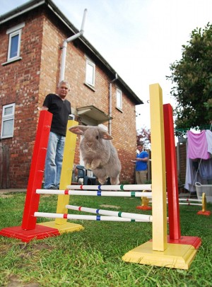 中新網(wǎng)5月4日電 對(duì)于一般人家的兔寶寶來說,每天最愜意的事莫過于睡睡懶覺或是啃啃胡蘿卜;然而英國(guó)哈斯拉姆家六只寵物兔的生活卻不落俗套,據(jù)英國(guó)《每日郵報(bào)》1日的報(bào)道,在主人的指導(dǎo)下,這六只小兔每天都要接受“跨欄”訓(xùn)練,它們還滿懷信心的要去參加寵物比賽。