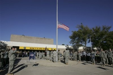 奧巴馬并下令即日起到11日退伍軍人節(jié)為止,白宮和其它聯(lián)邦機(jī)構(gòu)降半旗向受難者致哀。他說,這是對那些正準(zhǔn)備為國家冒生命危險卻喪命的人的最起碼敬意。