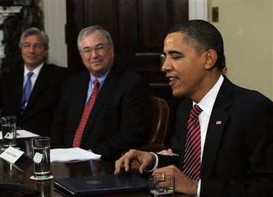 奧巴馬曾經(jīng)指責這些領取高額花紅的“肥貓銀行家”,因此他借這次會面促使這些銀行擴大向小企業(yè)的貸款,以及停止干擾立法整頓金融管理系統(tǒng)的工作。