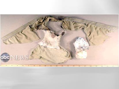 美國廣播公司公布的圖片顯示,內(nèi)褲炸彈是一條襠部被縫上一包炸藥的內(nèi)褲。所有照片旁都有一把尺子,以說明相關物品的尺寸。