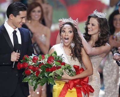 中新網(wǎng)1月31日電 據(jù)美聯(lián)社報(bào)道,當(dāng)?shù)貢r(shí)間30日晚上,2010年度美國(guó)小姐大賽結(jié)束。來(lái)自弗吉尼亞州的卡梅隆(Caressa Cameron)贏得了2010年美國(guó)小姐稱(chēng)號(hào)。