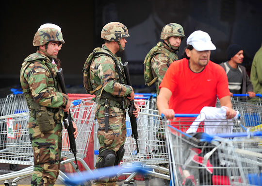 中新網(wǎng)3月3日電 當(dāng)?shù)貢r(shí)間2日,為了阻止8.8級(jí)地震后日益擴(kuò)大的哄搶現(xiàn)象,智利政府決定將在地震重災(zāi)區(qū)康塞普西翁市的宵禁延長至18小時(shí),同時(shí)將宵禁范圍擴(kuò)大到其他三個(gè)城鎮(zhèn)。此外,目前在地震災(zāi)區(qū)維持治安的軍隊(duì)人數(shù)已達(dá)1.4萬。