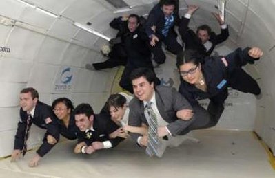 飛機(jī)從佛羅里達(dá)州泰特斯維爾起飛,在墨西哥灣上空飛行的一個(gè)小時(shí)期間,以拋物線的方式飛行,先后16次疾升俯沖,每次產(chǎn)生30秒的無重力狀態(tài),使所有乘客感受總共7分鐘半的失重狀態(tài),凌空漂浮和互相碰撞。
