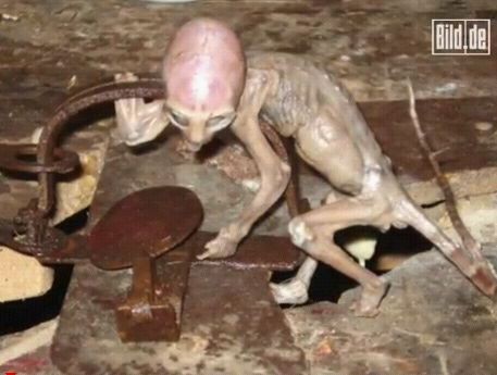 那個被捕鼠器捉到的外星人寶寶,后來遭到農(nóng)場工作人員的“毒手”,被活活淹死了。它的尸體被制成標(biāo)本,并進(jìn)行了各種分析實(shí)驗(yàn)。不明飛行物專家認(rèn)為,它就是一個外星人;而其他的科學(xué)家更愿意相信它是地球上一種未知生物。到目前為止,所有的DNA檢測還沒有得出確切的結(jié)果。