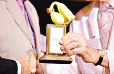 難得的是,雖然乍看之下得獎(jiǎng)似乎并不光彩,主辦單位也表示如果得獎(jiǎng)人覺(jué)得受辱,他們會(huì)撤銷提名。但事實(shí)上多數(shù)獲獎(jiǎng)?wù)叨己芨吲d,主辦方還會(huì)請(qǐng)來(lái)諾貝爾獎(jiǎng)得主擔(dān)任評(píng)委。比如去年諾貝爾經(jīng)濟(jì)獎(jiǎng)得主克魯格曼這次就獲邀出席。