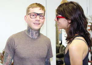 據(jù)英國媒體16日報道,一名美國加利福尼亞男子在自己臉上文了一副黑框眼鏡的視頻最近紅遍了互聯(lián)網(wǎng),這名叫做馬修的美國男子顯然是個“文身控”(指癡迷文身的人),因?yàn)槌四樋淄,他渾身上下全文滿了各種五花八門的圖案!懊绹凶幽樕衔难坨R”的視頻本周被傳上YOUTUBE網(wǎng)站后,立即獲得了至少50萬人次的點(diǎn)擊率。網(wǎng)民們懷疑這個視頻只不過是眼鏡公司炮制的一個手段高明的宣傳廣告而已。