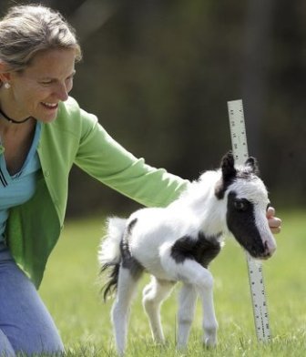 據(jù)報(bào)道,這匹擁有白毛黑斑的小馬一出生就相當(dāng)?shù)男。抑挥?磅重,比之前吉尼斯世界紀(jì)錄最小的馬還輕3磅。盡管身材矮小,但它的全身比例非常均勻。