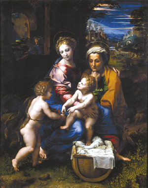 據(jù)了解,目前由普拉多博物館收藏的名畫《神圣家族》(全稿)最早系拉斐爾本人起筆,他1520年去世之后,便由其最得意的門生之一吉尤里奧·洛馬諾接手完成。