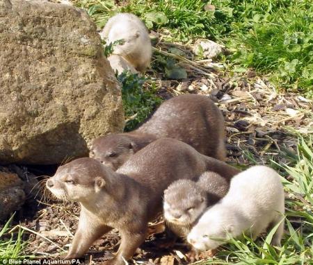 藍(lán)色星球水族館經(jīng)理湯姆.康威爾(Tom Cornwell)表示,一般情況下,動(dòng)物寶寶應(yīng)該會(huì)有與父母相同的體貌特征,但這兩只白色水獺寶寶的父母皮毛都為黑棕色。