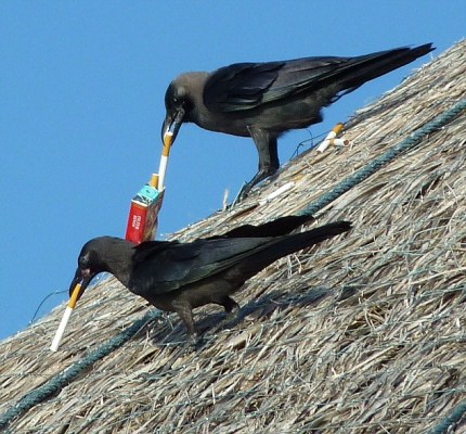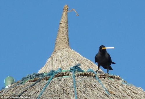 中新網(wǎng)5月20日電 據(jù)外電19日?qǐng)?bào)道,兩名英國(guó)游客日前在馬爾代夫捕捉到令人啼笑皆非的一幕,幾只烏鴉煞是有型的叼起香煙,在房頂盡享“快感”。