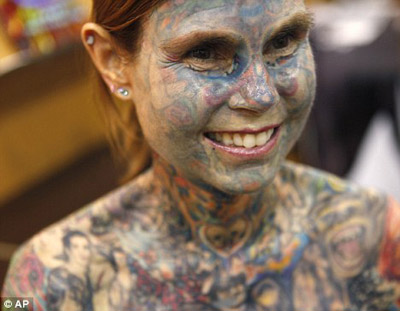 中新網(wǎng)5月27日電 據(jù)英國(guó)媒體報(bào)道,美國(guó)女孩希努斯(Julia Gnuse)全身95%都覆蓋著五顏六色的紋身。她也被吉尼斯世界紀(jì)錄評(píng)為世界上紋身最多的女人。5月26日,她出席了紐約圖書博覽會(huì),也展示了自己身上的紋身。