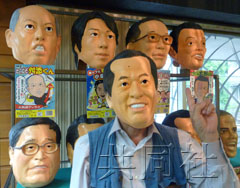 圖片中央為備受青睞的日本首相菅直人的面具