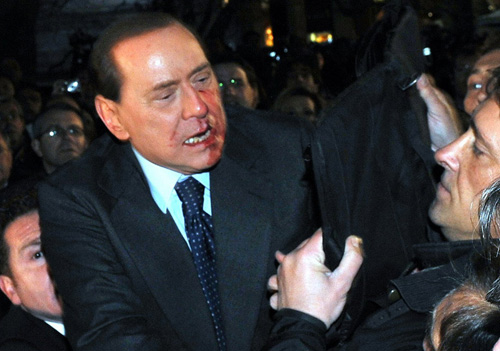 中新網(wǎng)12月14日電 當?shù)貢r間13日,意大利總理貝盧斯科尼在米蘭市中心的米蘭大教堂附近參加一場政治集會,發(fā)表完演講離開時遭到一名中年的男子的襲擊。該男子隔著保鏢向他的右臉方向扔去一件重物,導致其鼻骨輕微骨折,兩顆牙齒斷裂,嘴唇內(nèi)外也都受傷,需要在醫(yī)院接受24小時觀察,以及為期20天的治療。消息一出,舉世嘩然。