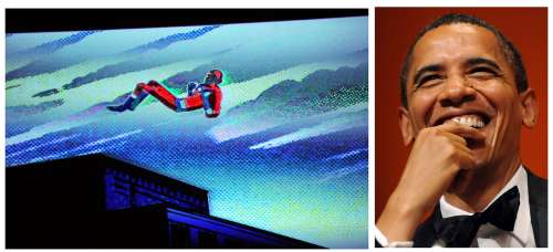中新網(wǎng)6月21日電 一段把美國(guó)總統(tǒng)奧巴馬描繪成排除萬難的超級(jí)英雄大加諷刺的音樂錄像,19日在美國(guó)的電臺(tái)及電視臺(tái)派員協(xié)會(huì)周年晚宴上播放。有份列席的奧巴馬觀賞這段錄像時(shí)笑得合不攏嘴。