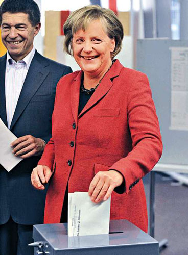 默克爾領(lǐng)軍的基民黨/基社黨(CDU/CSU),隸屬中間偏右的保守陣營(yíng),與主張自由競(jìng)爭(zhēng)市場(chǎng)經(jīng)濟(jì)體制和減稅的右派自民黨政見相近,兩黨組成聯(lián)合政府,德國(guó)的政治生態(tài)從此向右轉(zhuǎn),對(duì)投資環(huán)境和工商團(tuán)體有利,外交部長(zhǎng)一職,很可能由自民黨的黨魁威斯特威勒(Guido Westerwelle)出任。