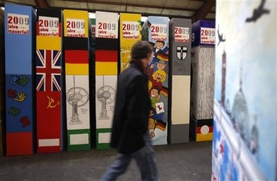 今年11月9日是柏林墻倒塌20周年紀(jì)念日,重建的“柏林墻”將是這個花費500萬歐元的慶;顒拥牧咙c!鞍亓謮Α遍L達1.5公里,在勃蘭登堡門前沿原始的路線矗立兩天。