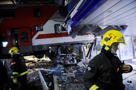 芬蘭鐵路局官員稱(chēng),4日上午,一列火車(chē)在開(kāi)進(jìn)首都赫爾辛基中央車(chē)站后,剎車(chē)系統(tǒng)突然失靈,火車(chē)毫無(wú)預(yù)兆地沖進(jìn)車(chē)站旁假日酒店(Holiday Inn)的會(huì)議室。