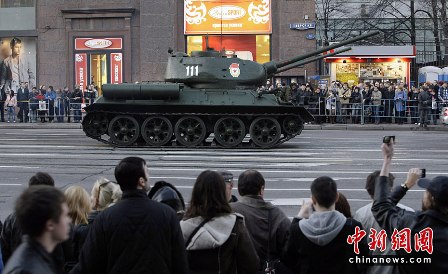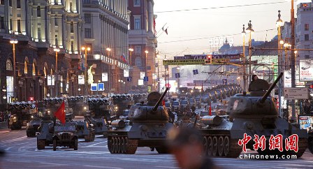 據(jù)報(bào)道,27日,俄羅斯出動(dòng)約159輛軍用車輛及1萬多名軍人,進(jìn)行了關(guān)于今年5月9日俄羅斯衛(wèi)國戰(zhàn)爭“勝利日”65周年時(shí),紅場閱兵儀式的彩排活動(dòng)。此次閱兵分為兩部分:歷史部分和現(xiàn)代部分。歷史部分由身穿衛(wèi)國戰(zhàn)爭時(shí)期軍服的士兵游行,同時(shí)還會有9輛T-34坦克和8輛SU-100自行火炮進(jìn)行在游行隊(duì)伍當(dāng)中,F(xiàn)代部分則由13輛老虎裝甲車、BTR-80裝甲車、BMP-3步兵戰(zhàn)車、T-90A坦克和S-400防空系統(tǒng)等組成。