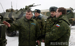 中新網(wǎng)1月15日電 據(jù)俄新網(wǎng)14日報(bào)道,俄羅斯總統(tǒng)德米特里·梅德韋杰夫由國防部長陪同在莫斯科州參觀了新式履帶式裝甲運(yùn)輸車。