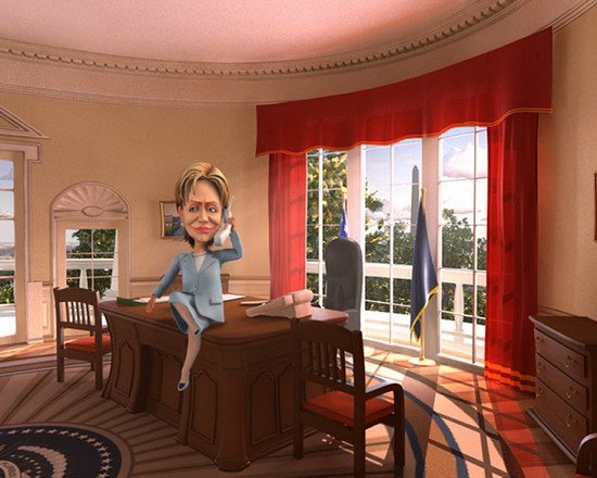 這段卡通片名為《動(dòng)畫人性》(Cartoon Personalities),是于15日在俄羅斯國家電視臺第一頻道播出的。這段動(dòng)畫生動(dòng)地展現(xiàn)了多位政治人物和明星的形象。片中,美國國務(wù)卿希拉里·克林頓一身天藍(lán)色套裝打扮,和平日里的著裝非常相似。不過希拉里卻是坐在白宮橢圓形辦公室的桌子上,一邊翹著二郎腿一邊打電話,面部表情還很嚴(yán)肅。
