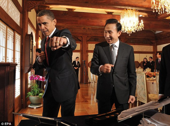 據(jù)英國(guó)《每日郵報(bào)》報(bào)道,美國(guó)總統(tǒng)奧巴馬在籃球場(chǎng)上的颯爽英姿與舞池中的風(fēng)流倜儻已經(jīng)有目共睹,但他還有很多絕活兒能讓世人為之傾倒。借著訪問(wèn)韓國(guó)的大好時(shí)機(jī),他向韓國(guó)總統(tǒng)李明博大秀跆拳道技術(shù),博得滿堂喝彩。