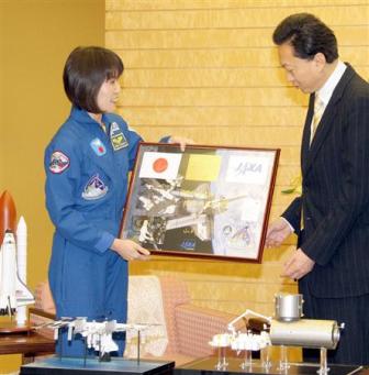 中新網(wǎng)5月21日電 據(jù)日本新聞網(wǎng)報(bào)道,從宇宙空間站返回不久的39歲日本美女航天員山崎直子20日下午到首相官邸,向日本首相鳩山由紀(jì)夫作匯報(bào)。鳩山說(shuō)了一句話,讓山崎差一點(diǎn)昏倒。鳩山問(wèn)山崎“日本為什么不開(kāi)發(fā)載人宇宙飛船”,而報(bào)道指出這句話應(yīng)該是山崎反問(wèn)鳩山才對(duì)。