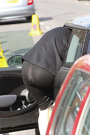 狗仔近身跟拍這位新首相夫人時(shí)發(fā)現(xiàn),當(dāng)天薩曼莎雖然以一身黑色套裝包裹得嚴(yán)嚴(yán)實(shí)實(shí),但她上車時(shí),緊身黑裙在陽(yáng)光下變得非常透明,還露出里面的黑色丁字褲。目前身懷六甲的薩曼莎并不像普通孕婦那樣穿著保守的內(nèi)衣,讓英國(guó)媒體驚嘆她特立獨(dú)行的穿衣品位。