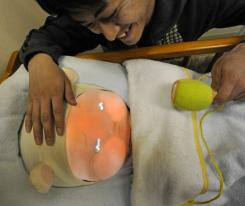 中新網(wǎng)3月10 日電 據(jù)外電10日報(bào)道,日本近日推出一款新型機(jī)器人“嬰兒”。這個(gè)被昵稱為“太郎”的機(jī)器嬰兒在人們輕輕搖擺或者撫摸它時(shí),會(huì)發(fā)出咯咯的笑聲,并做出搖手晃腳的可愛姿態(tài),但它也會(huì)像真正的嬰兒那樣發(fā)出任性的哭聲。