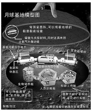 據(jù)介紹,月球基地或?qū)⑦x址地下。地下將設(shè)有緊急避難所;氐膶(shí)驗(yàn)室可以分為三個(gè)艙,分別是生物培養(yǎng)艙、科研工作艙和人員訓(xùn)練艙。