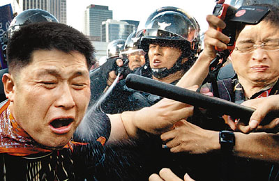 在30日傍晚所舉行的“530反政府”萬人示威游行持續(xù)至深夜,憤怒民眾齊聚首爾廣場,不愿離去,甚至爆發(fā)民眾用鐵鏟攻擊警用巴士,場面一度失控。
