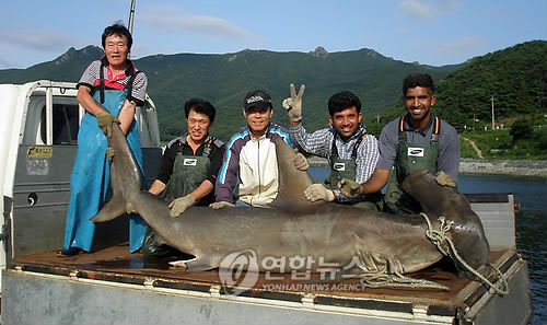 韓國國立水產(chǎn)科學(xué)院資源研究科博士金正年(音)表示:“錘頭雙髻鯊和大白鯊非常兇猛。最近在釜山共同海鮮市場(chǎng)經(jīng)常能夠見到賣鯊魚的攤位。”“隨著周邊海域海水變暖,鯊魚出沒現(xiàn)象往后還會(huì)日益頻繁!