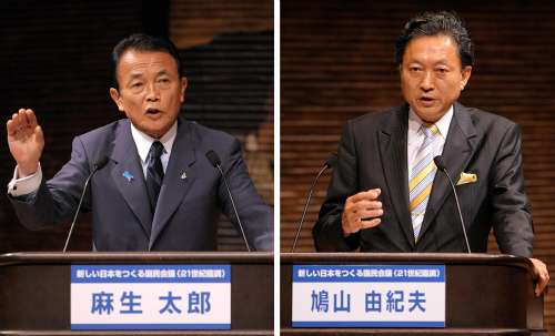 據(jù)日本共同社報道,麻生表示民主黨的政策是“沒有財源的亂花錢,是不負責任。不能把日本安全交給一個在安全保障政策上沒有一貫性的政黨”,對民主黨的執(zhí)政能力質疑。鳩山則稱“執(zhí)政黨的政策是官僚主導制定,把日本變成了一個官員到民間企業(yè)就職多、浪費多的國家。這是官僚主導的政治打破不了的”,訴說政權更迭的必要性。
