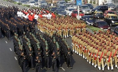 中新網(wǎng)11月26日電 綜合外電報(bào)道,25日,印度警察列隊(duì)走過(guò)孟買(mǎi)幾處標(biāo)志性建筑,并向公眾展示了新式裝甲車(chē)和武器,以紀(jì)念孟買(mǎi)恐怖襲擊事件一周年。