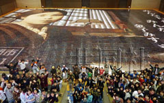 該縣長門商工會議所青年部等發(fā)起了挑戰(zhàn)拼畫紀錄的活動,得到了市民的支持。照片的征集從去年4月開始。去年12月31日晚,約220名市民用了6個多小時完成了拼畫。市民在微博網站“Twitter”上發(fā)布的消息也起到了宣傳效果,應征照片中有的來自海外。