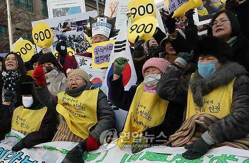 中新網(wǎng)1月13日電 韓國挺身隊問題對策協(xié)會(以下簡稱挺身隊協(xié)議會)13日下午12點在日本駐韓國大使館前舉行了第900次周三集會。