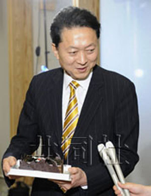 鳩山笑容滿面地說:“對能收到這樣甜蜜的禮物表示感謝!被仡欉^去的一年,他又苦笑著說:“雖然自己盡心盡力了,但得不到國民理解的時候只能承受痛苦!