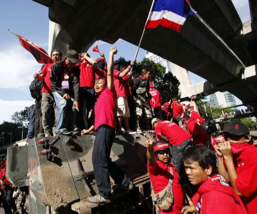 泰國最高法院最近裁定充公他信逾半資產(chǎn),惹來他信的支持者強烈反對。反獨裁民主聯(lián)盟(UDD,俗稱“紅衫軍”)計劃動員百萬民眾,星期五開始在曼谷周邊地區(qū)集合,之后再在曼谷市內(nèi)多處,包括皇家田廣場和國會大樓前,舉行百萬人反政府集會和示威。紅衫軍領(lǐng)袖聲言集會會以和平方式進行,目標是三日內(nèi)迫使總理阿披實解散國會,重新大選。他們更表示,剛頒布的國內(nèi)安全法不會阻止他們的活動。