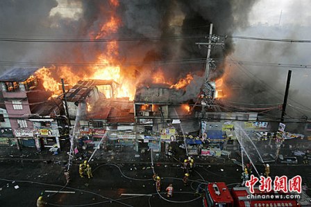 中新網(wǎng)4月26日電 據(jù)臺灣“中廣新聞網(wǎng)”報道,菲律賓首都馬尼拉郊區(qū)奎松市的一座貧民窟25日下午慘遭火災(zāi)肆虐,大火一發(fā)不可收拾,數(shù)百棟房屋付之一炬,上萬人無家可歸。