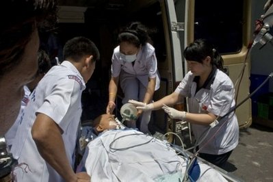 中新網(wǎng)5月1日電 據(jù)“中央社”報道,泰國反政府紅衫軍29日闖入朱拉醫(yī)院搜查,以為軍人鎮(zhèn)守大樓準(zhǔn)備驅(qū)離行動,紅衫軍領(lǐng)袖30日致歉并清出部分路障供救護(hù)車與病人進(jìn)出,但已有逾1000名病人轉(zhuǎn)院。