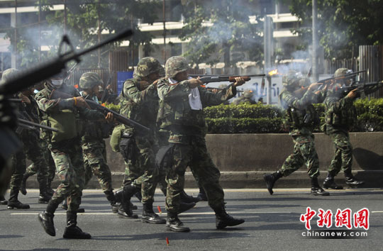 中新網(wǎng)5月14日電 13日,在泰國(guó)首都曼谷,紅衫軍和軍警再次發(fā)生暴力沖突。14日,沖突升級(jí)。據(jù)外電報(bào)道,泰國(guó)官方表示,當(dāng)天的沖突已造成5人死亡,81人受傷。
