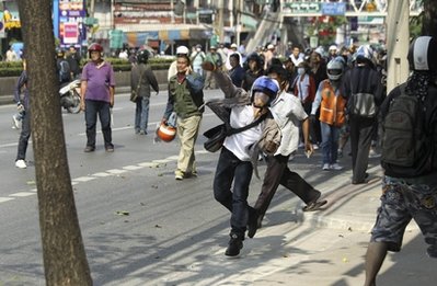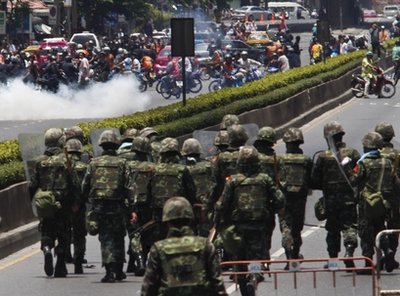 泰國軍隊在包圍紅衫軍的據(jù)點后,雙方發(fā)生嚴(yán)重沖突,軍隊使用實彈射擊。身在現(xiàn)場的記者稱,曼谷市中心的道路上看到燃燒的汽車,聽到槍聲、爆炸聲,天空有直升飛機盤旋,感覺如同戰(zhàn)場一樣。
