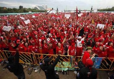 四月份泰國發(fā)生的長達兩星期的反政府示威活動導(dǎo)致一百多人受傷,兩人死亡。 那場大示威還迫使本來要在泰國舉行的東盟峰會取消,導(dǎo)致首都曼谷部分地區(qū)陷于癱瘓。泰國當局因此下令曼谷進入緊急狀態(tài),還對14名示威領(lǐng)導(dǎo)人發(fā)出逮捕令,其中包括流亡的前總理他信。