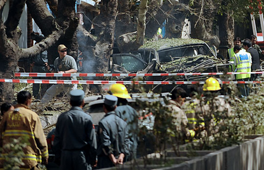 據(jù)報道,爆炸發(fā)生地附近有多國部隊駐扎。事發(fā)于早上8時許,一名自殺式襲擊者駕駛滿載炸藥的汽車,在北約駐阿富汗國際安全援助部隊(ISAF)總部門外引爆炸彈。爆炸導致大樓玻璃粉碎,附近多輛汽車損毀,地上血漬斑斑。